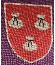 St. Matthew: depicted by three money bags. St. Matthew was a tax collector at his post when Jesus called him. St. Matthew left all behind to follow the Lord.